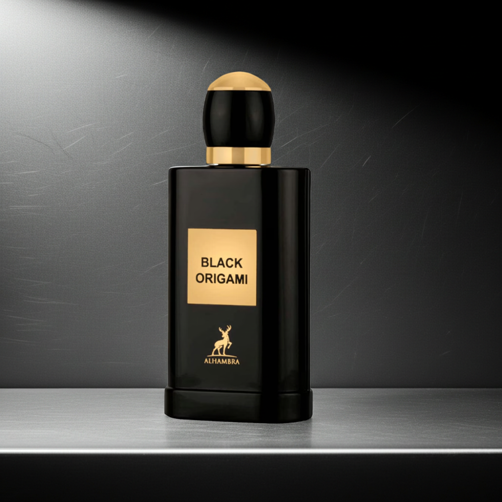 Black Origami by Maison Alhambra is a dark, sophisticated unisex Eau de Parfum inspired by modern oriental woody fragrances like Yves Saint Laurent La Nuit de L’Homme. It blends spicy freshness, smooth woods, and warm oriental sweetness into a refined and mysterious scent.